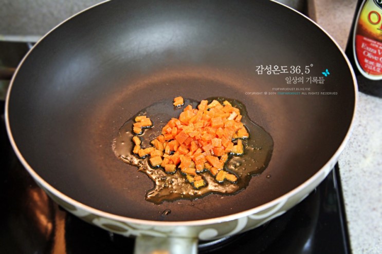 올리브유 1큰 술을 두르고 당근을 중불에서 볶아 준다.