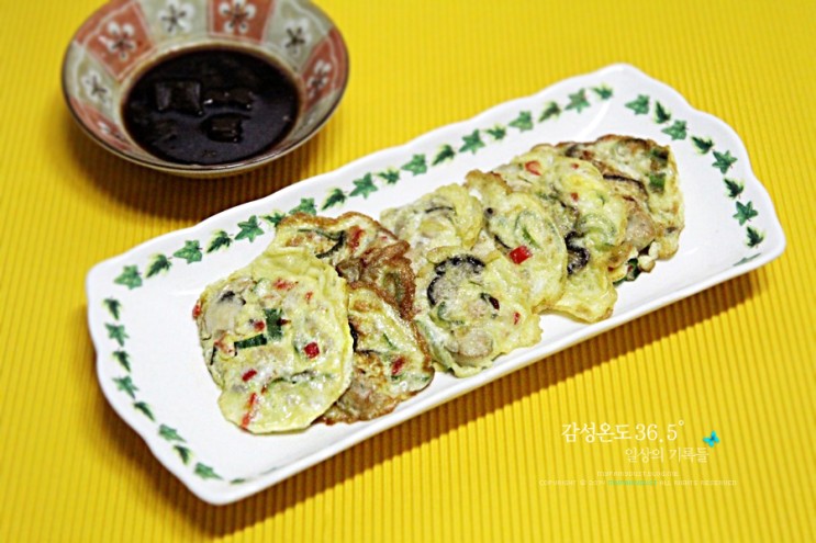 완성된 굴전은 접시에 담아준다. 함께 먹을 간장 양념도 만들어 준다.