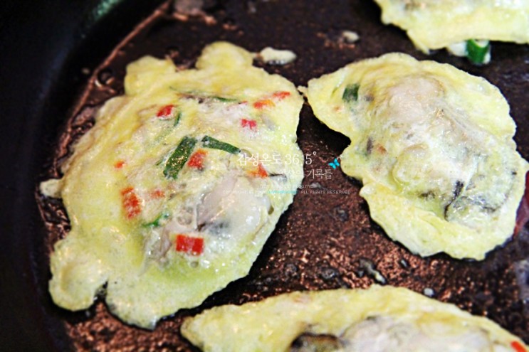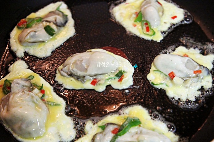 기름 넣고 달군 팬 위에 한 숟가락씩 굴을 떠서 부쳐준다.